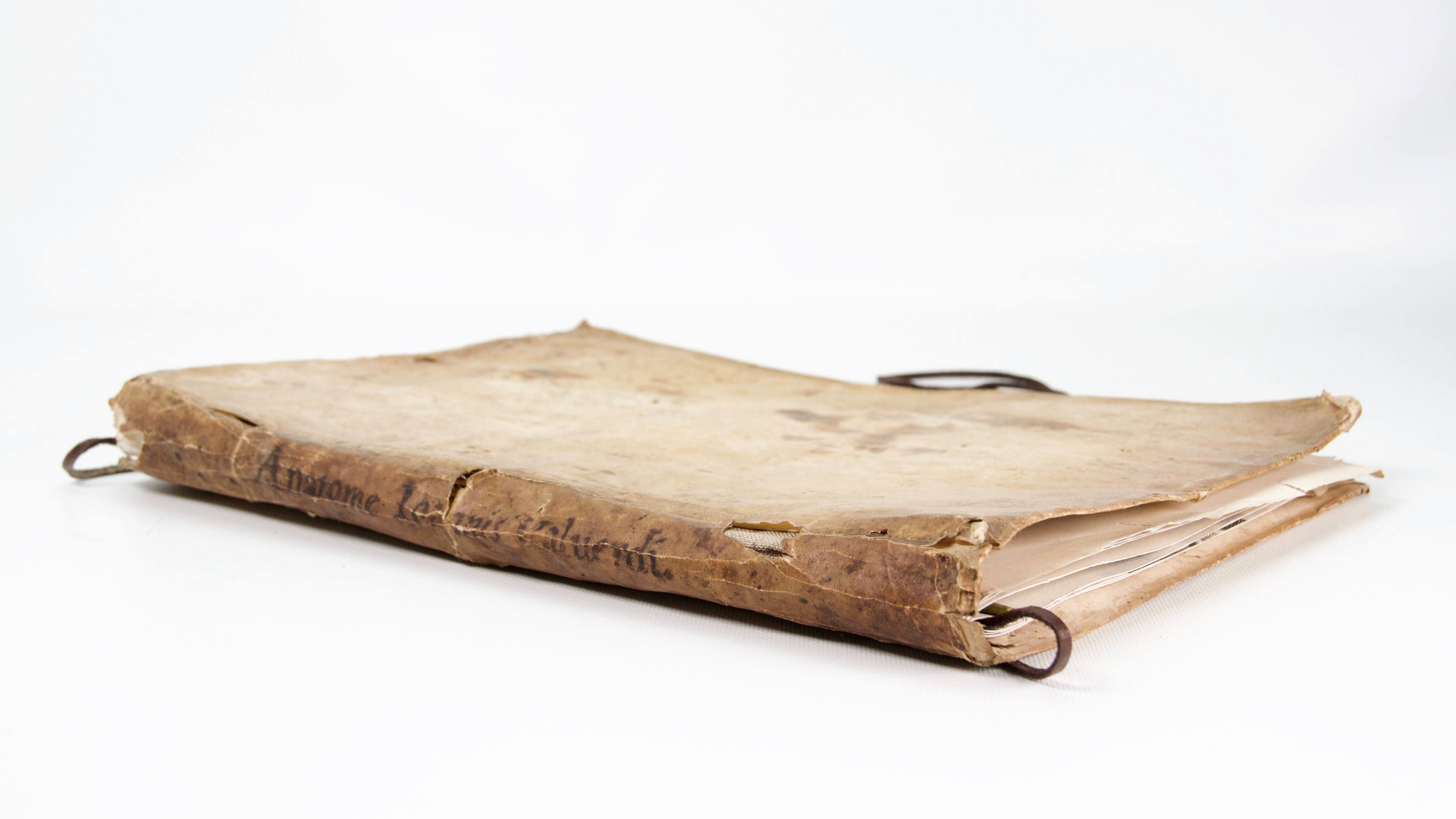 Joshua Watson’s Leg (In Four Movements) is a three-channel video installation accompanied by an assortment of pseudo-historical objects and a handbound sculptural book (w/ embedded digital screen). The project is based off of an authentic 18th century handwritten note that was found in a bin of scrap paper at a traditional bookbindery in 2015.